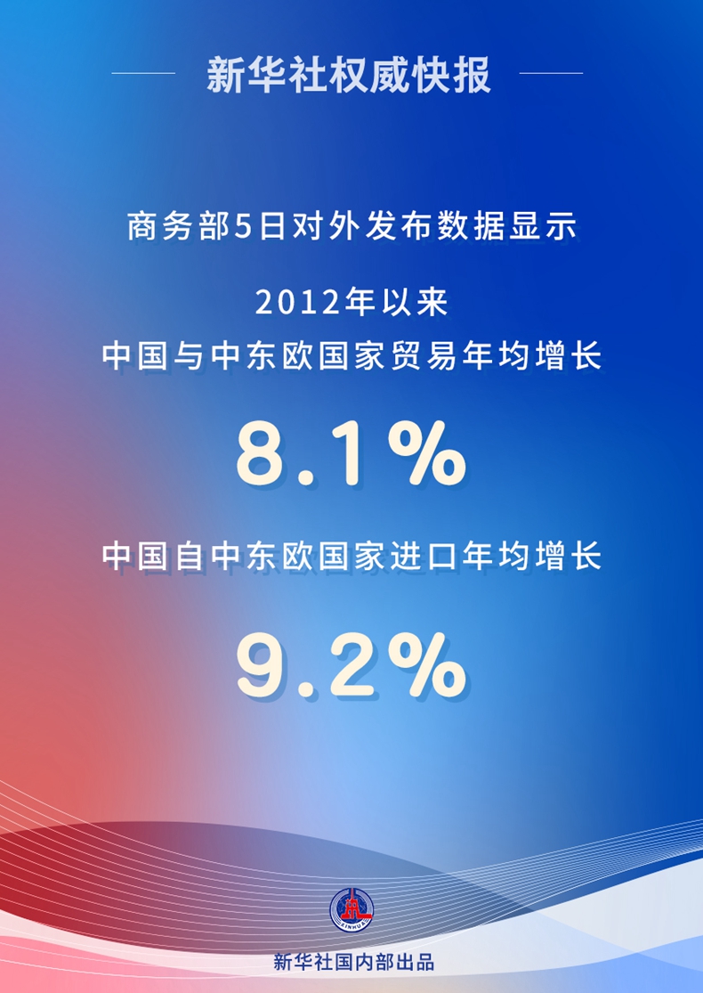 2012年以来中国与中东欧国家贸易年均增长8.1%